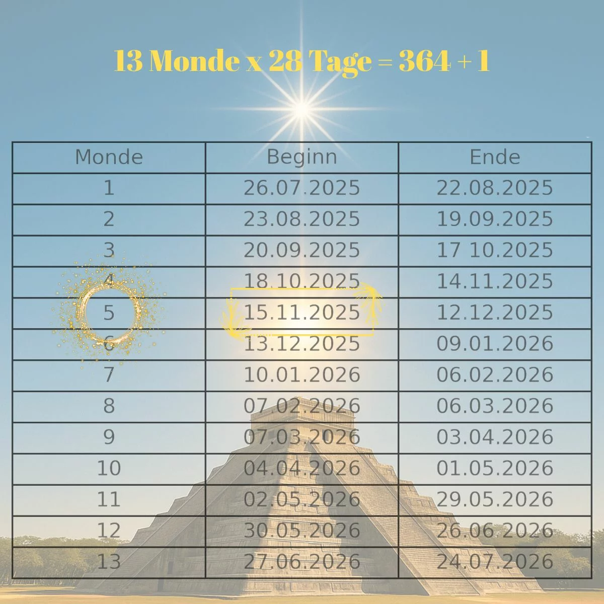 KIN des aktuellen Galaktischen Jahres ab 26.07.2025